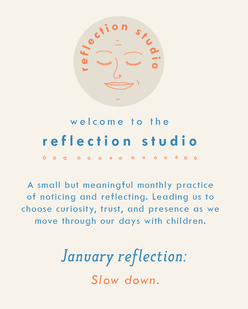 We’re introducing a new rhythm and ritual here on Substack. The first post of the month will be a chance to pause, reflect, share, and learn from each other in a Reflection Studio. We will set a monthly intention and discover together how these small shifts can make a big impact in our days with children. If you’re already a paid subscriber, this offering is already included. And thank you! If you are not yet a paid subscriber, you can get a taste of this experience this month and see if it’s a practice you’d like to try. Of course, we’ll continue to share lots of ideas and inspiration each week as we have been, and The Reflection Studio will give us another chance to think, digest, and make room for what matters in our creative practice with children.